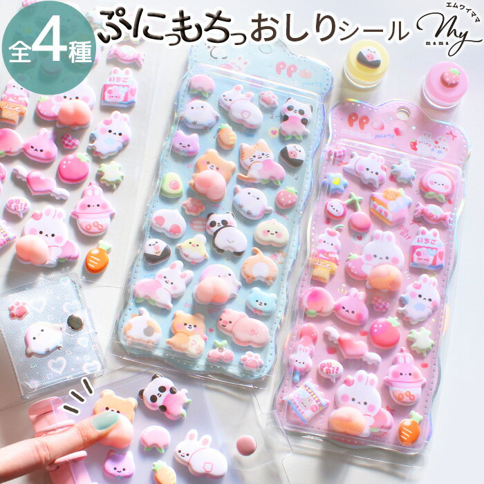 ◆新作◆ おしり ぷにぷに シール 全4種 ■ マシュマロ スクイーズ 3D シール交換 手帳 もちもち ステッカー 動物 うさぎ 猫 ねこ くま ぷくぷく もっちり 玩具 おもちゃ 泡ステッカー 立体 いちご デコ デコレーション ハンドメイド 手作り ■ ショップ:手作り工房MYmama(エムワイママ)
