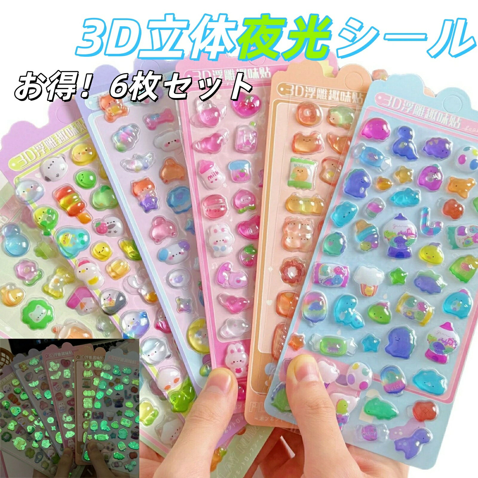 お得!6枚セット!新柄登場!6種類セット! ルミネセント ぷくぷくシール 夜光 おしり おしりシール 3Dシール 立体シール おはじきシール シール手帳 ぷっくり つやつやシール 立体シール ぷくぷくシール キャラクターシール かわいいシール 泡ステッカー