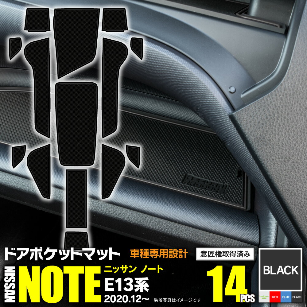 AZ製 新型 ノート E13 R2.12〜 ラバーマット ラバードアポケットマット カラー ブラック 14ピース ゴムゴムマット インナーマット 滑り止めシート 内装 パーツ アズーリ