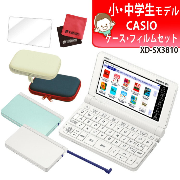カシオ 電子辞書セット XD-SX3810 小中学校モデル&ケース(オフホワイト/ネイビー)&保護フィルム&クロスセット 辞書 EX-word エクスワード CASIO 電子辞書 小学生 中学生 学生モデル XDSV3810 (選択式)